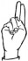 На ћирилици написано СЕРГЕЈ ТЕОФИЛОВИЋ састоји се из 16 слова [?]. Исписано ћириличном једноручном азбуком за глувонеме: